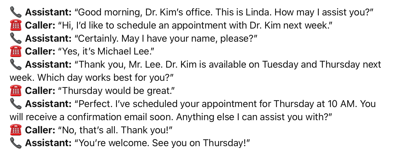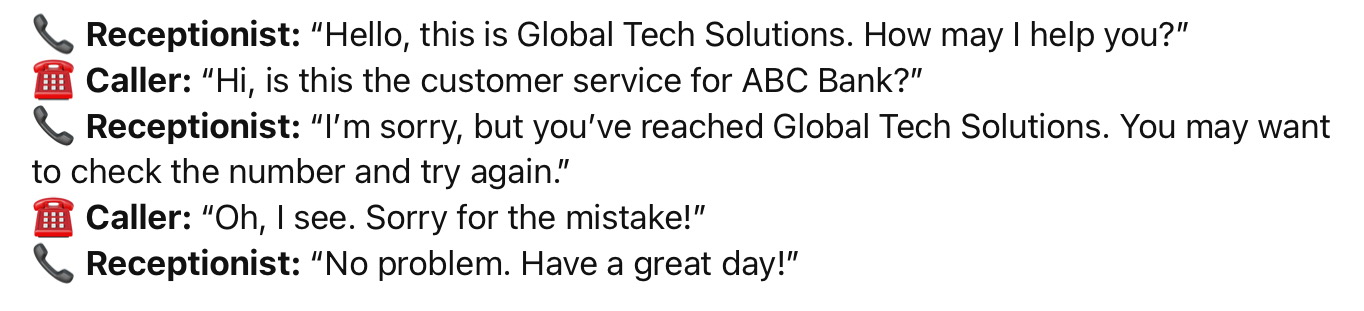 📞 Receiver: “Certainly. May I ask who’s calling?”