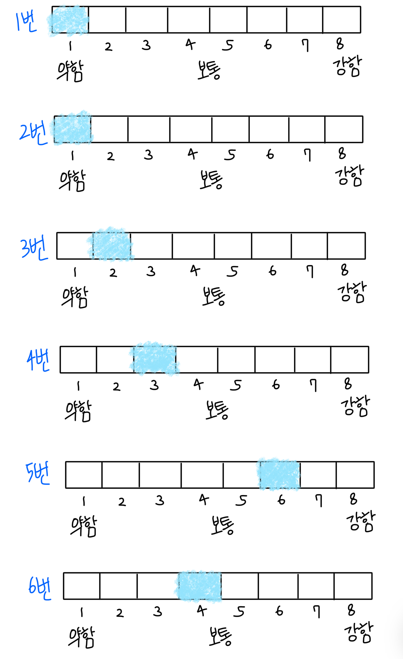 ➃ 용액을 맛본 후, 쓴 맛의 강도에 따라 순서를 기록한다.
