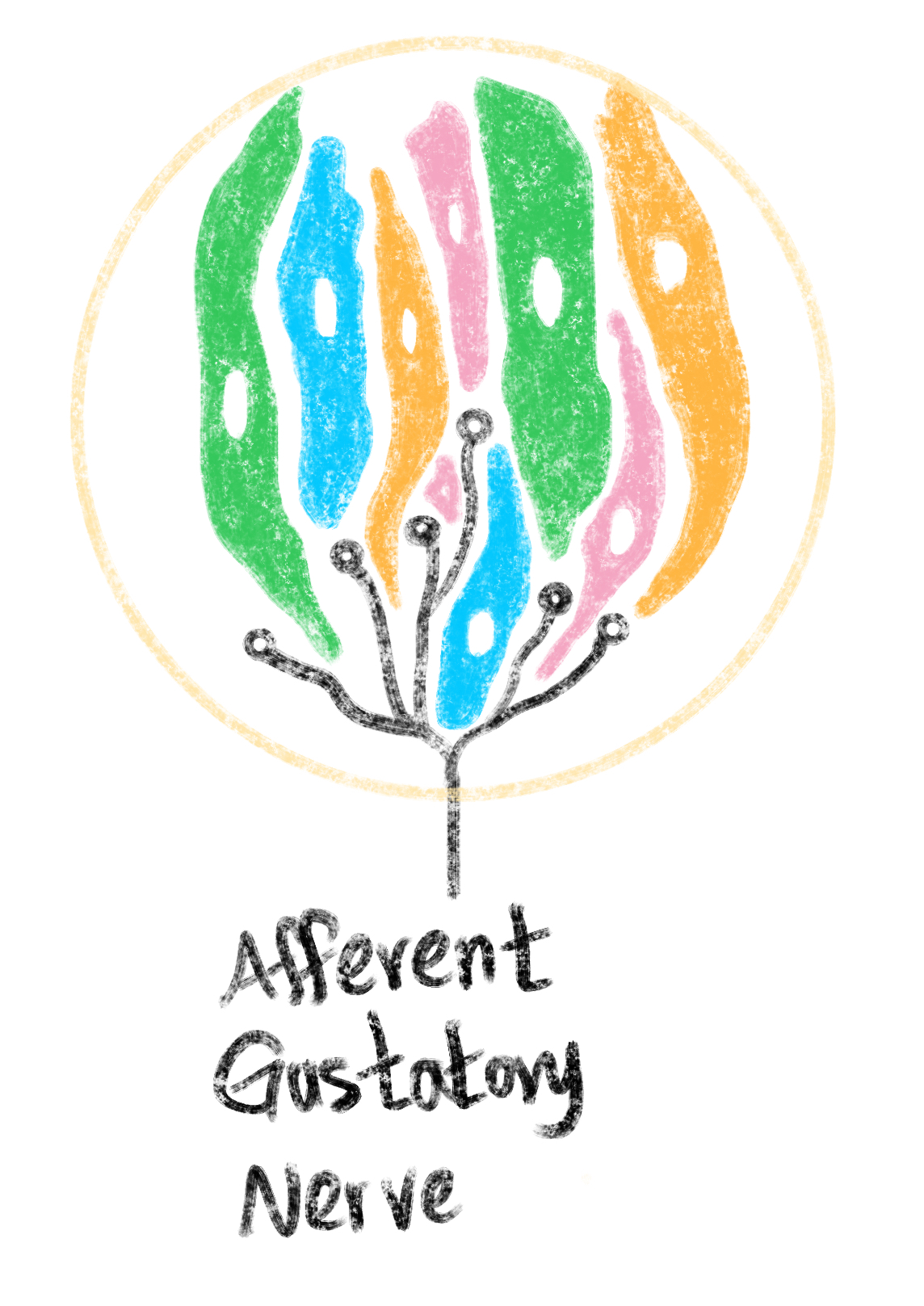 이 세포들은 기저세포(Basal cell), 지지세포(Supporting cell), 미각세포(Taste cell)로 구분되며, 미각신경과 연결되어 맛 신호를 전달하는 역할을 한다.